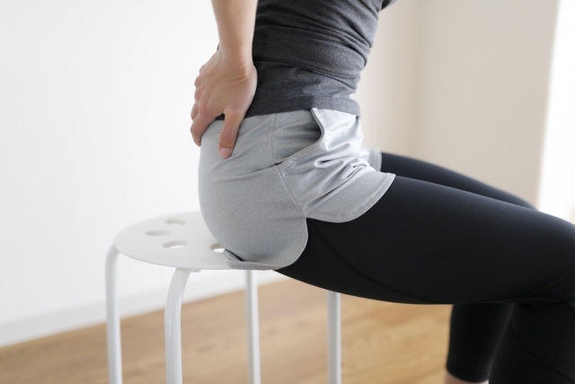 - 立位や座位での不快感や痛み