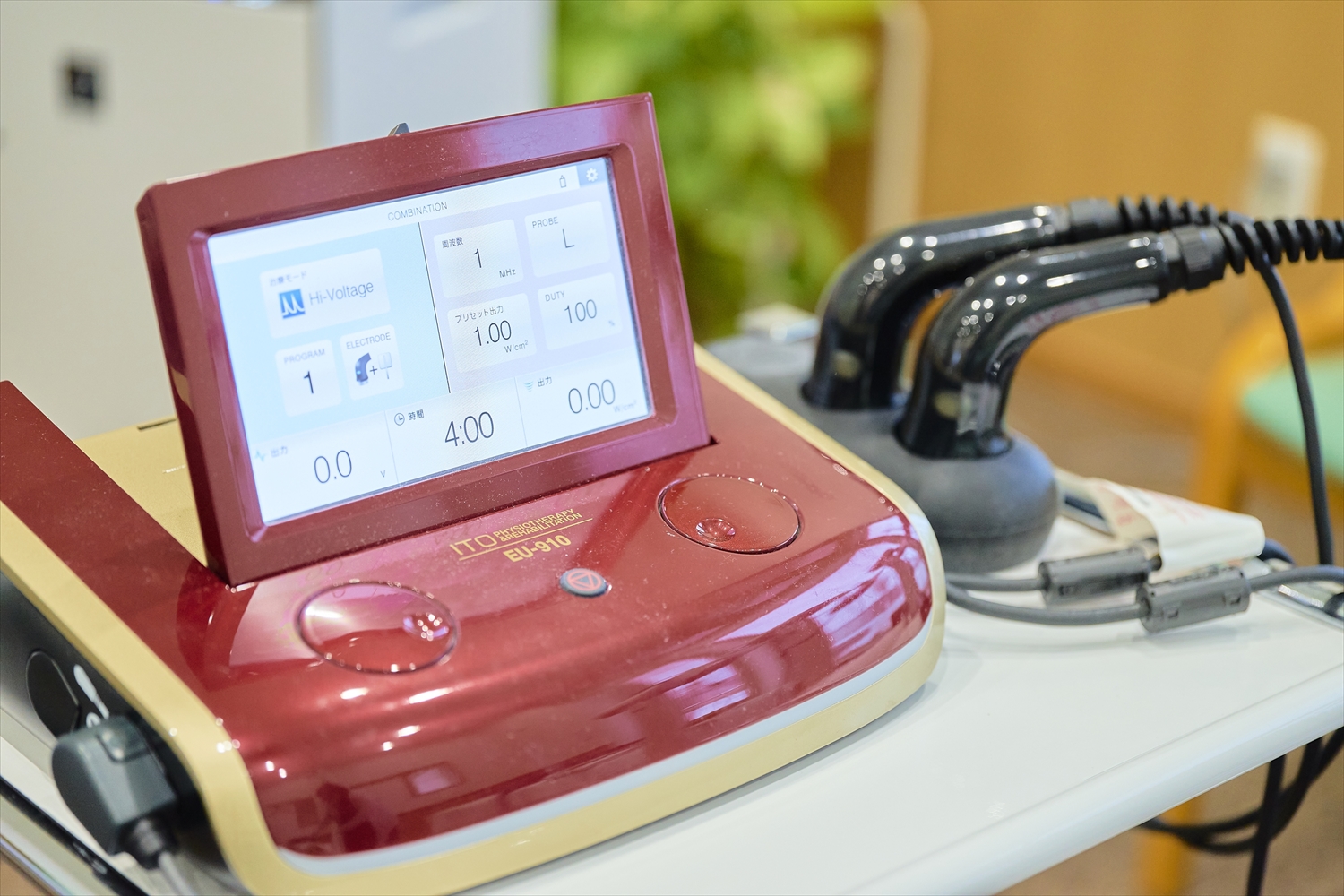 中周波領域と低周波領域の合成波を患部に流すことで、筋を収縮させて血行を促進し痛みを和らげます。筋肉や関節に対する痛みや神経痛などにも効果があります。電気治療が苦手な方でも安心してご利用いただけます。
