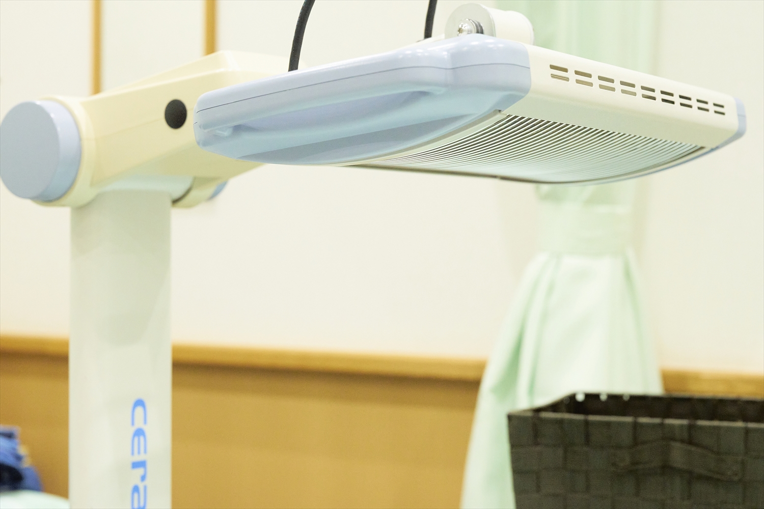 グリーンを基調としたリラックス空間で、鍼灸や各種機器を使用して施術しております。