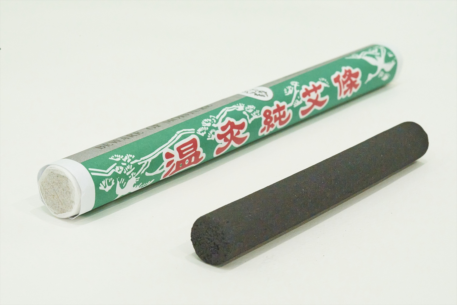 知熱灸は艾(もぐさ)を小さくひねって皮膚に置き、線香で火をつけて燃やすお灸です。